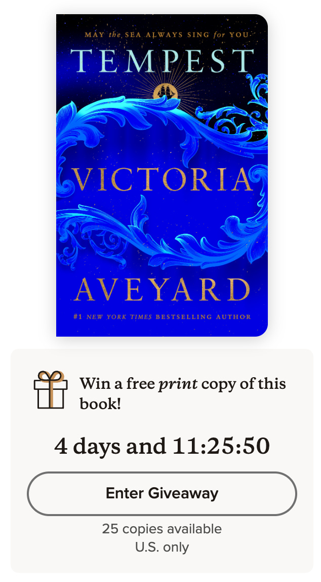 The first GOODREADS GIVEAWAY for TEMPEST is also live right now. You can enter to win 1 of 25 copies of the TEMPEST ARC here.